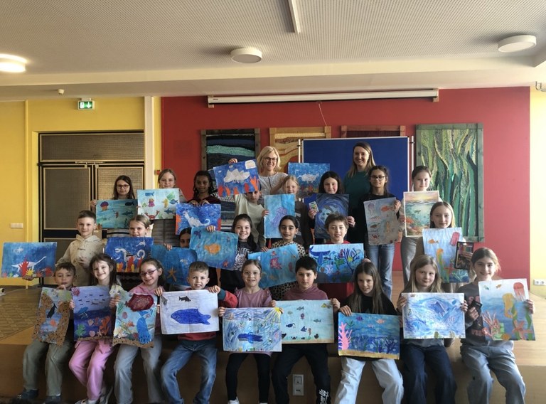 Unter mir das Meer Memmingen - Einen kreativen Tauchgang ins Tiefblau bot der diesjährige Malwettbewerb der VR Bank Memmingen, an dem auch die Kinder der Theodor-Heuss-Schule Memmingen teilnahmen. Unter dem Motto „Unter mir das Meer“ wurden 10 Klassen kreativ und präsentierten beeindruckende Werke, die das Thema Meer aus vielfältigen Blickwinkeln zeigten. Eine Jury wählte aus jeder Klasse drei Siegerbeiträge aus. Die Erstplatzierten jeder Klasse qualifizieren sich für die nächste Runde und haben nun die Chance einer breiten Öffentlichkeit zugänglich gemacht zu werden: die besten Werke aller teilnehmenden Schulen werden in der Zentrale der VR Bank in der Maximilianstraße ausgestellt, was den Künstlerinnen und Künstlern eine zusätzliche Bühne und Anerkennung verspricht. Organisatorin Monika Seybold lobte im Rahmen der Siegerehrung, zu der Bankmitarbeiterin Stefanie Spitzer mit tollen Geschenken an die Theodor-Heuss-Schule kam, die gelungene Mischung aus Maltechnik, Fantasie und Umweltbewusstsein: viele Bilder griffen ökologische Botschaften auf, betonten die Bedeutung der Meereswelt und zeigten gleichzeitig kreative Variationen von Farben, Formen und Perspektiven auf die faszinierende Artenvielfalt im Meer.